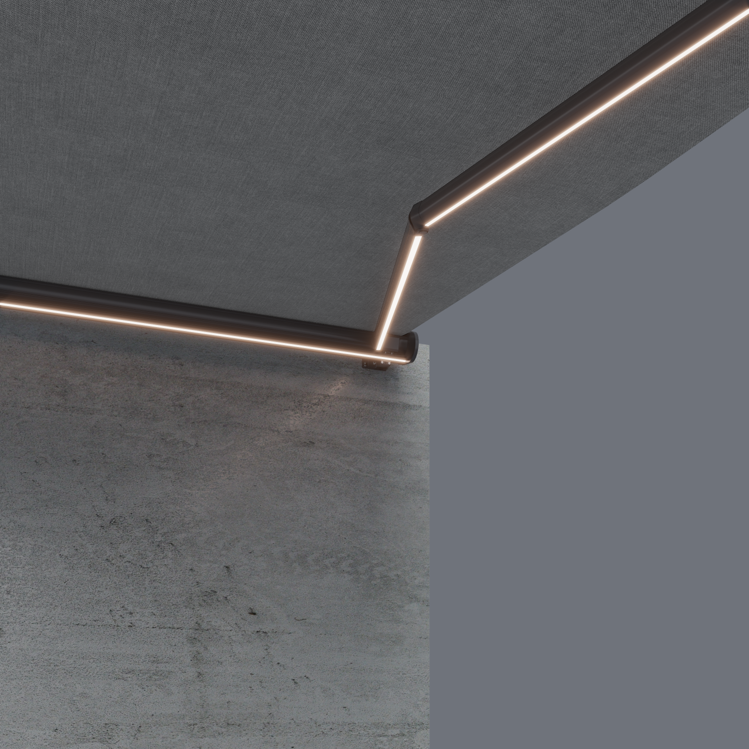 Unsere SkyShade Markise ist in mehreren Ausführungen erhältlich – mit oder ohne LED-Beleuchtung, in unterschiedlichen Stofffarben und mit optionalem Wind- und Sonnensensor. Alle Varianten basieren auf der gleichen hochwertigen Aluminiumkassette und dem robusten, wasserabweisenden Premiumstoff.